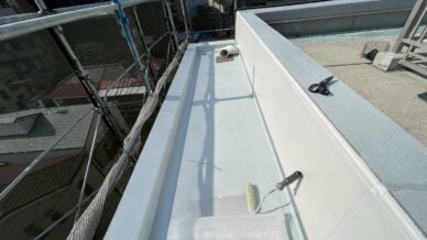 塗装工事A棟共用廊下の天井塗装、内壁の下塗り塗装をしました。先に天井、内壁の塗装をおこない塗装完了後に、面格子を戻してから腰壁の塗装を予定しております。防水工事B棟バルコニー内、2階庇のウレタン防水を...