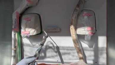 下地補修工事B棟共用部の脆弱塗膜補修、ルーフバルコニーの天端の欠損補修工事をいたしました。脆弱塗膜は既存の脆弱化した塗装膜を撤去しモルタルにて補修をおこない、天端の欠損も同じく、ケレン清掃後にモルタル...