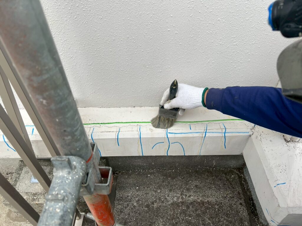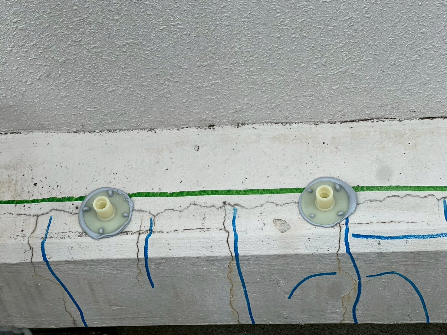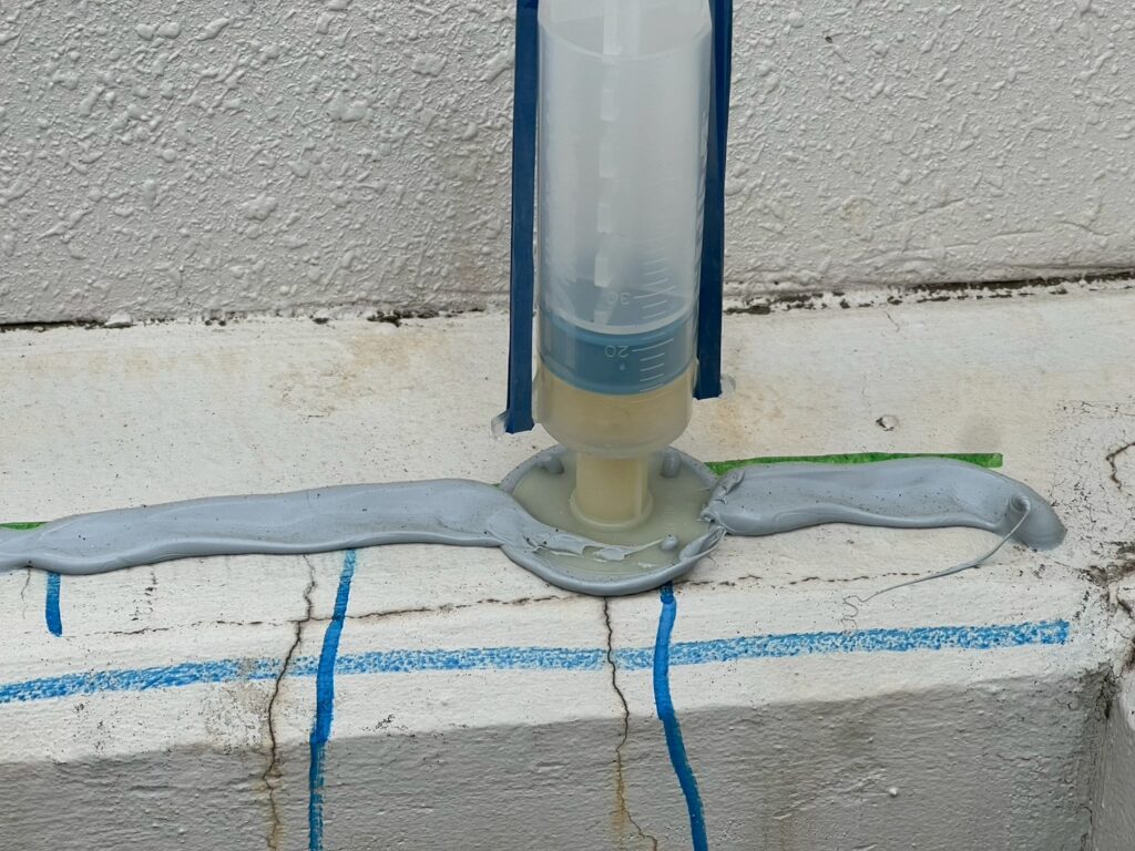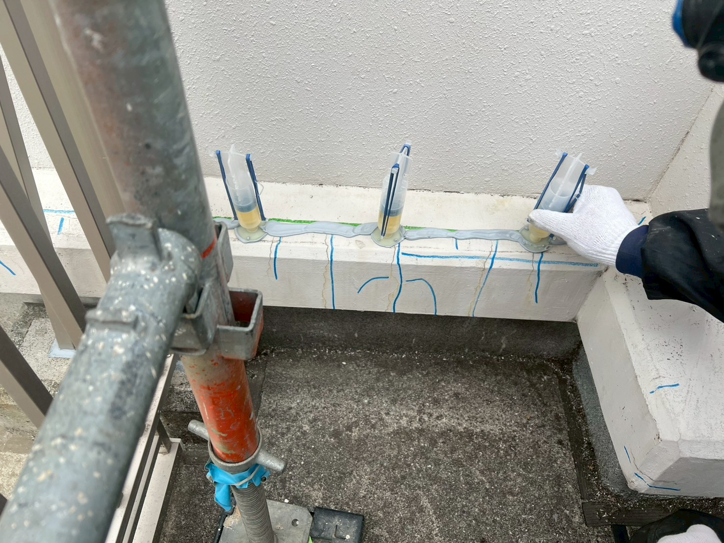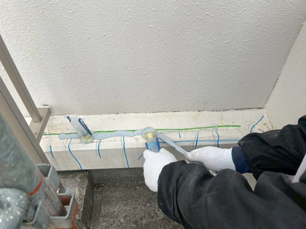 B棟ルーフバルコニーのクラック(ひび)に低圧注入工事をいたしました。