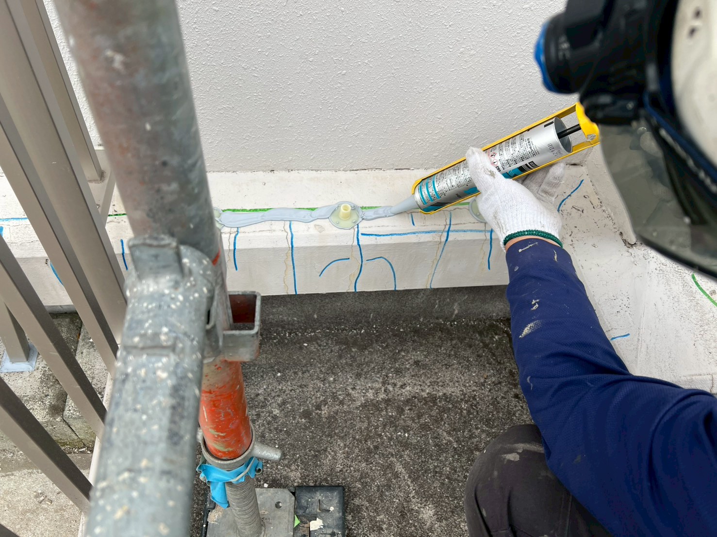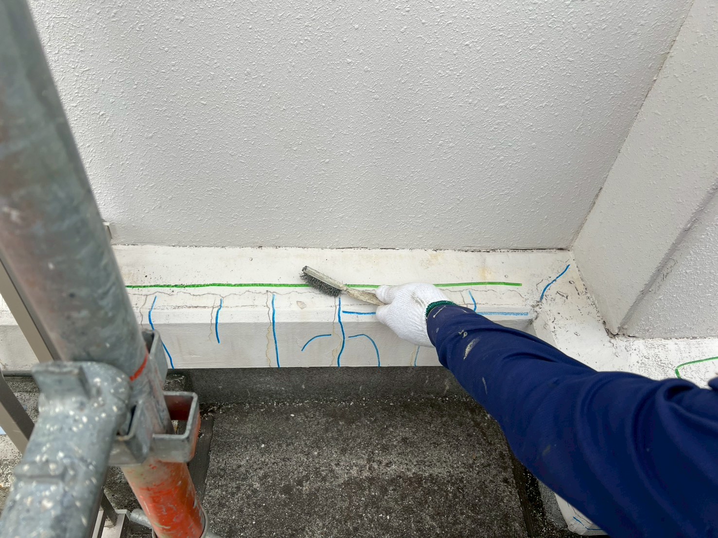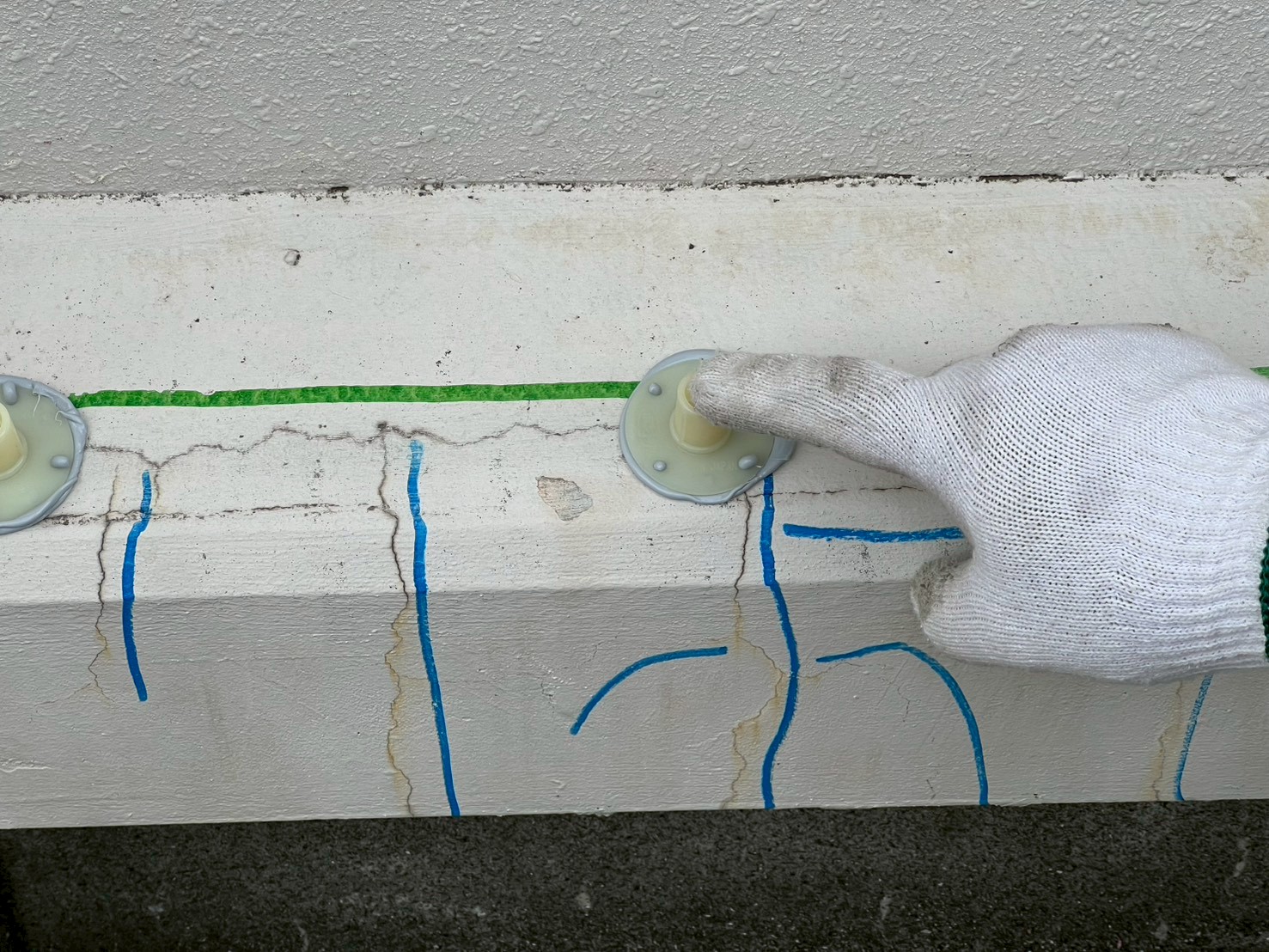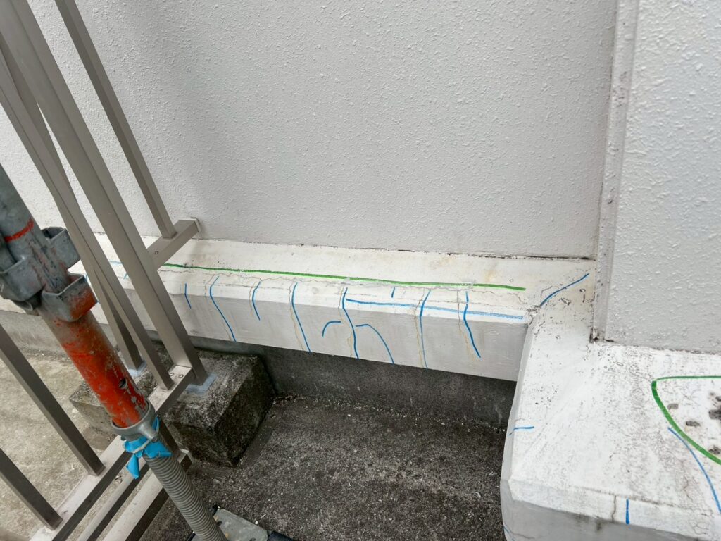 B棟ルーフバルコニーのクラック(ひび)に低圧注入工事をいたしました。