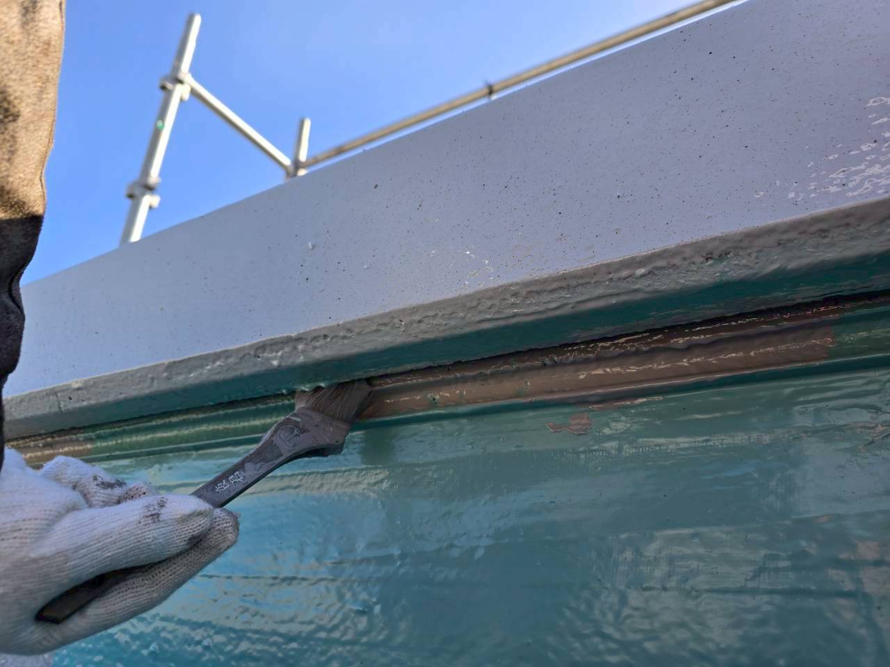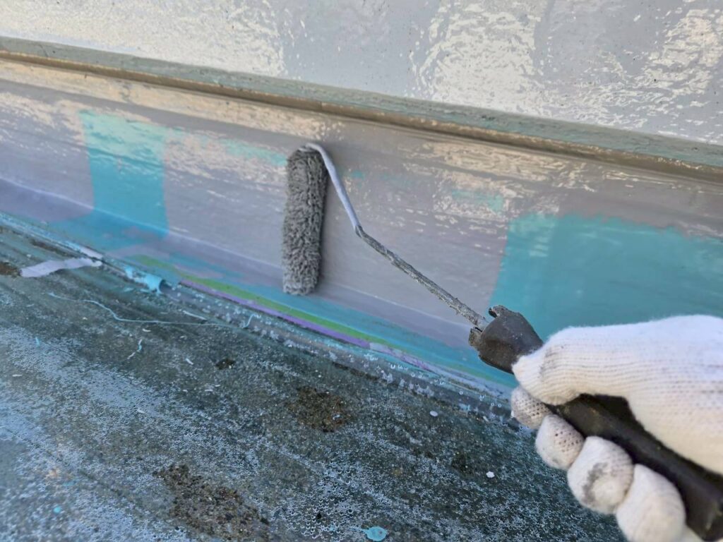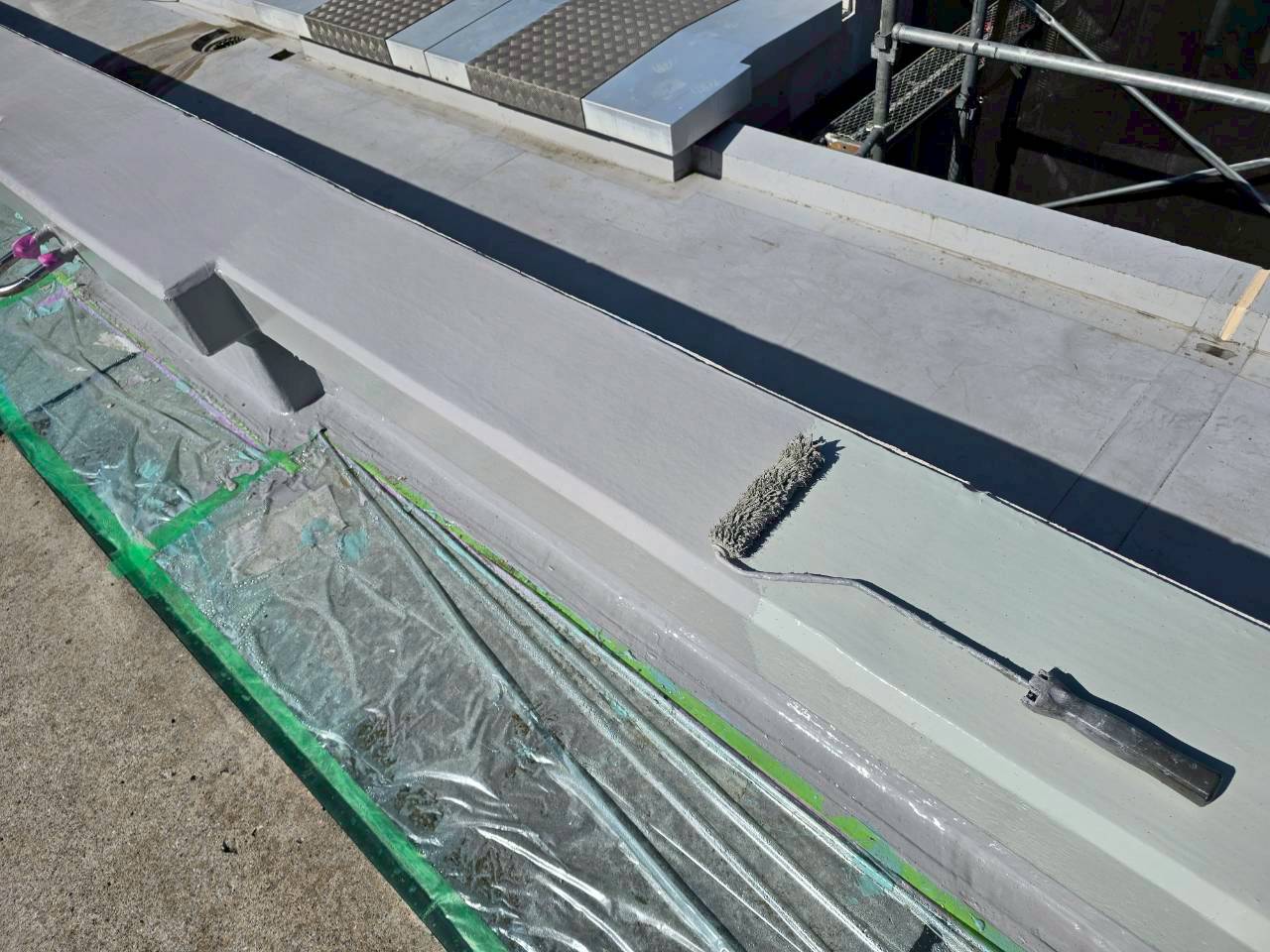 A棟屋上の庇、立上り、天端のトップコート塗布をおこないました。