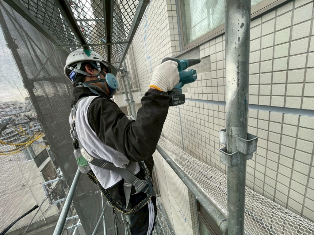 タイルを斫り作業をする際はお部屋の中にまで振動音が発生しご迷惑をおかけしました。