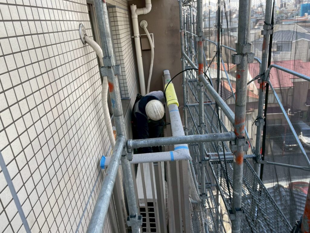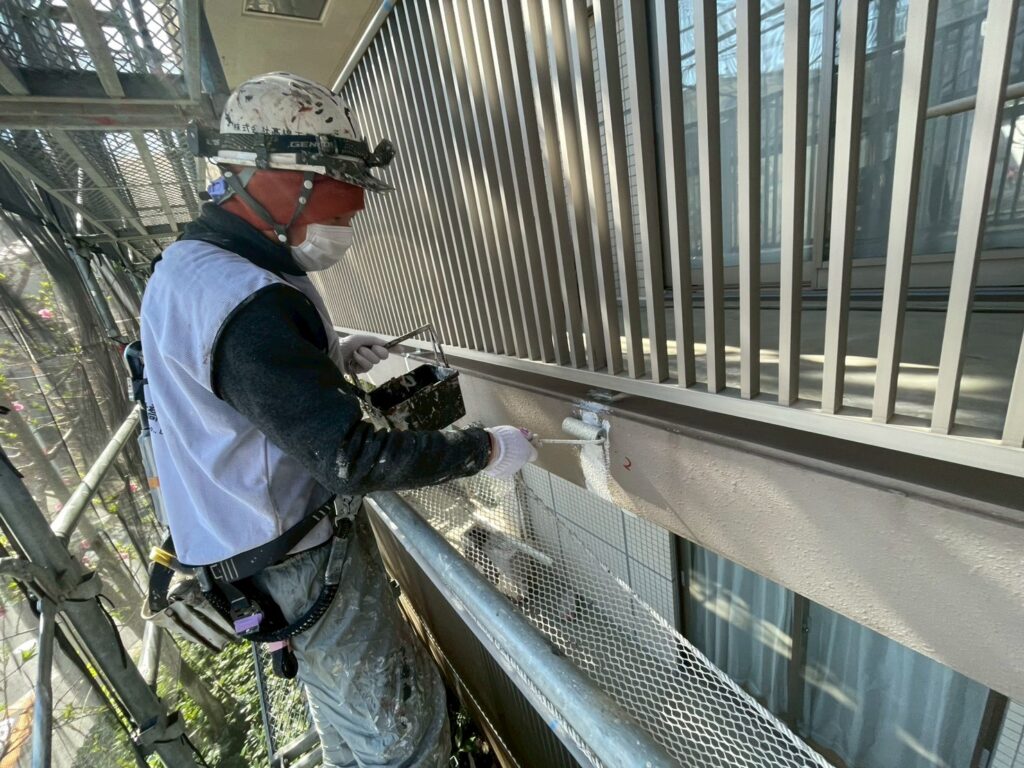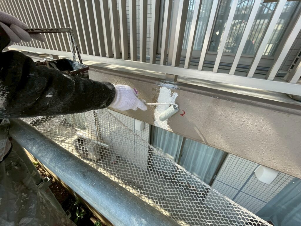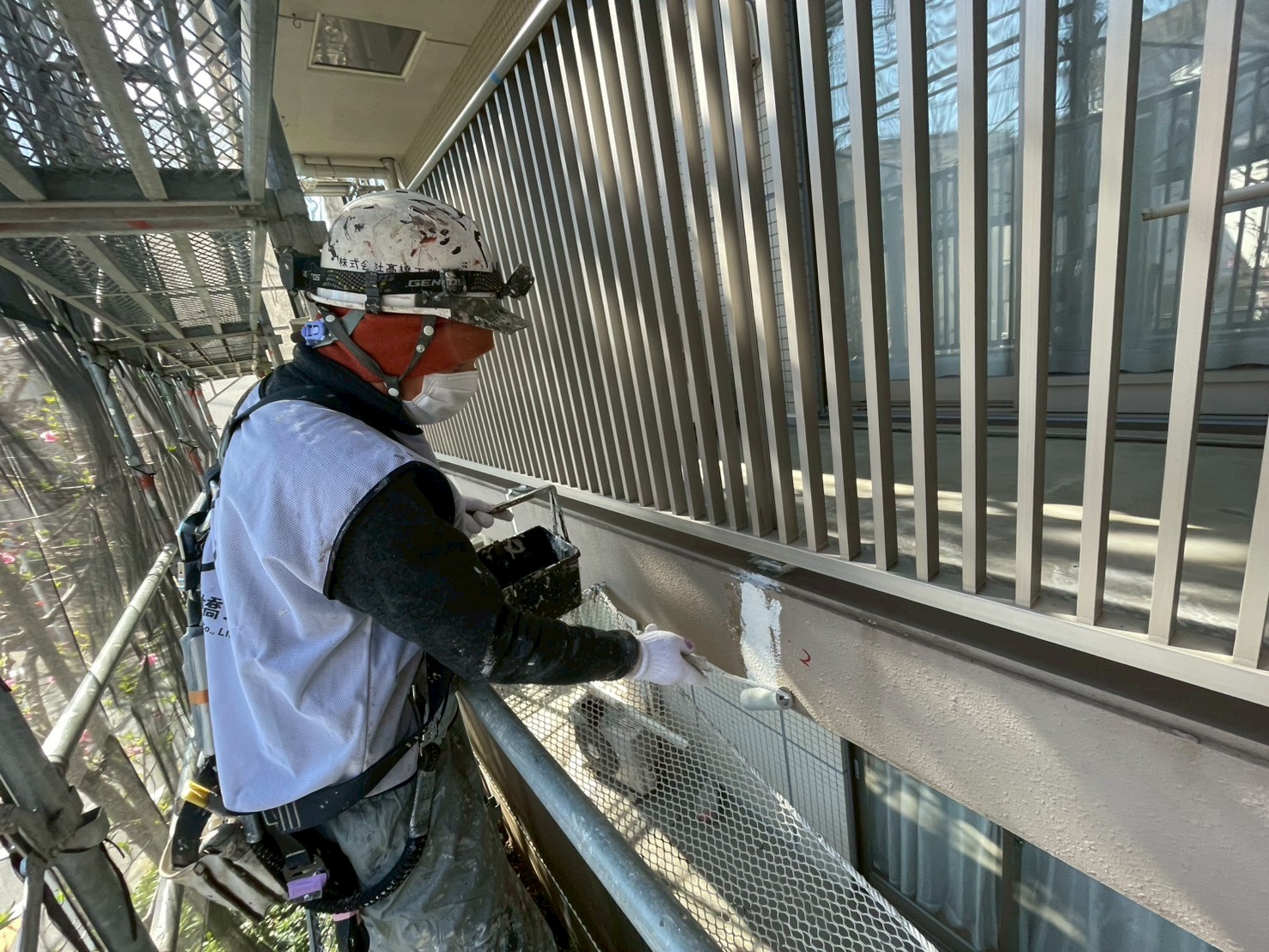 3月11日 (水) 作業状況 2026.03.17 目次 塗装工事洗浄工事3月12日 (木) 予定 塗装工事 B棟5号室の養生と下塗り工事 バルコニーは週末に使用できない部屋を減らすために、B棟は5号室を完了してから6号室~8号室の作業をします。 洗浄工事 A棟のタイル面洗浄、サービスバルコニーの高圧洗浄工事をしました。 3日間にわたり洗浄工事のご協力ありがとうございました。 3月12日 (木) 予定 ・止水工事 ・塗装工事 ・防水工事