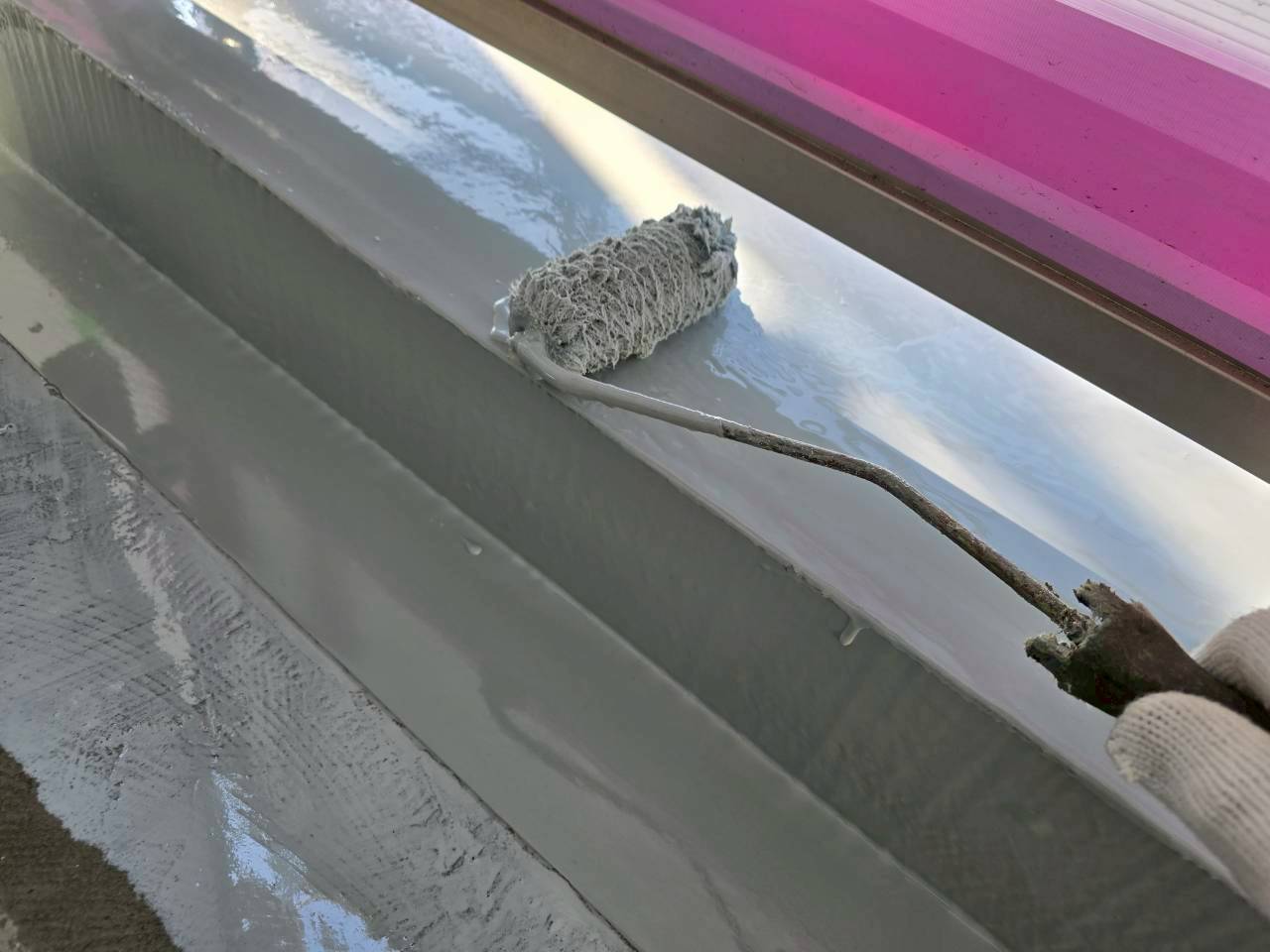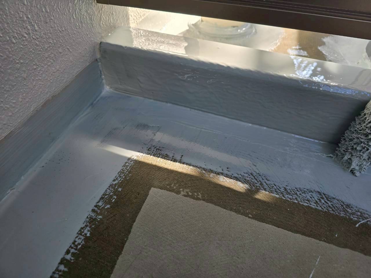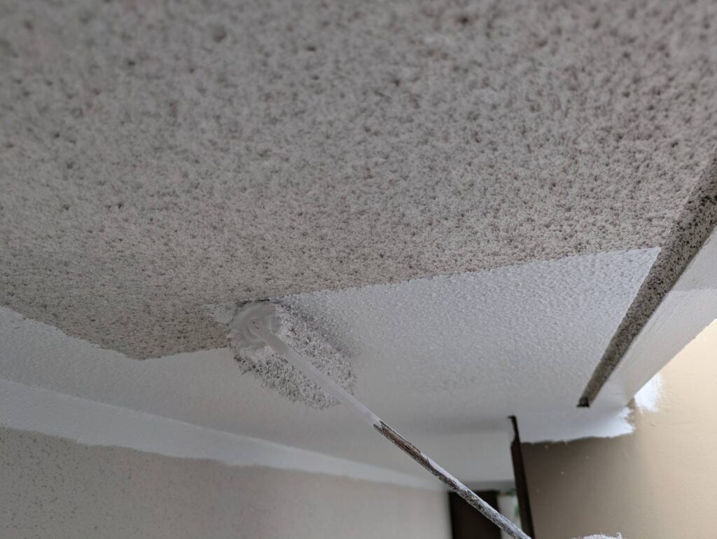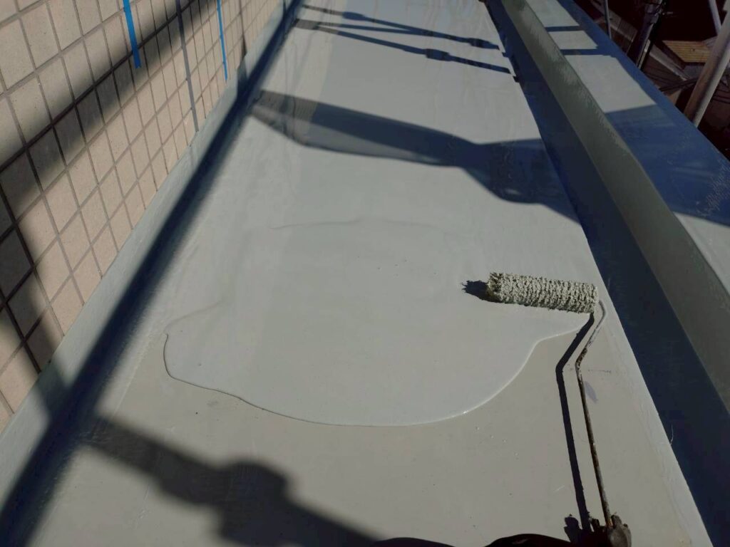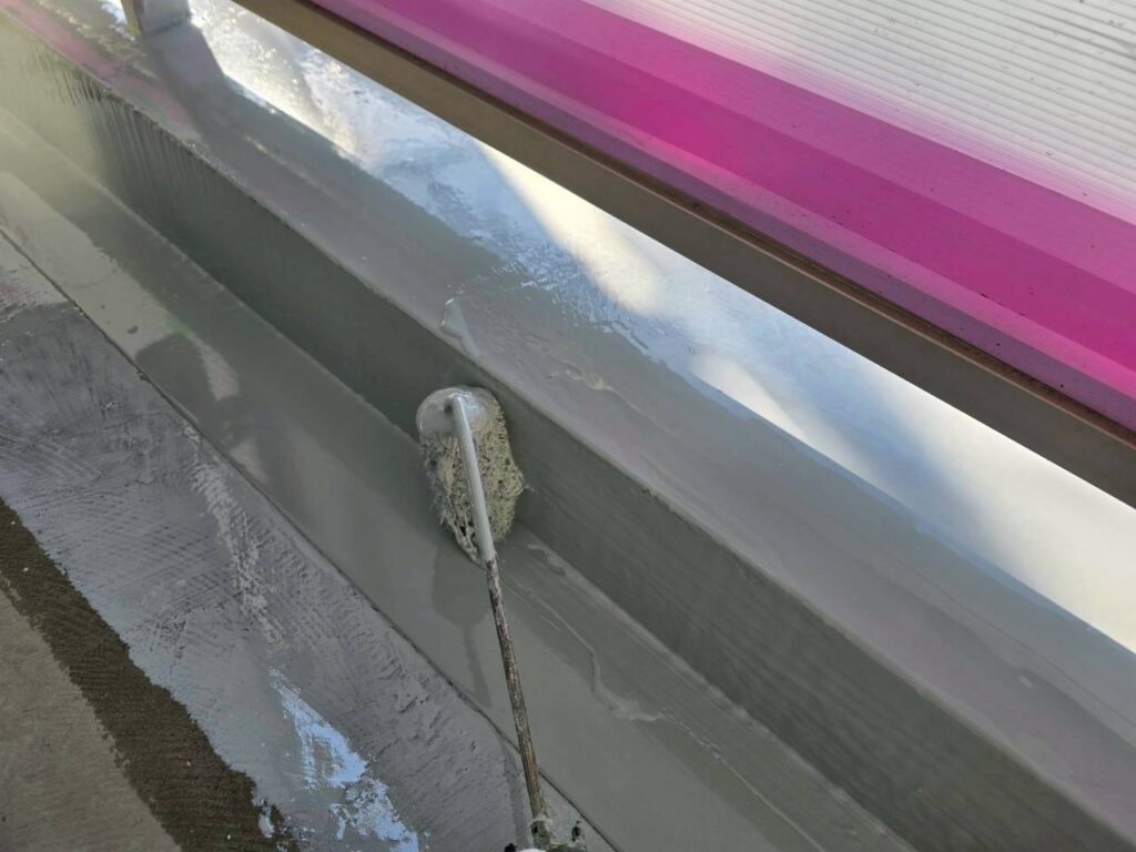 3月12日 (木) 作業状況 2026.03.182026.03.23 目次 塗装工事防水工事3月13日 (金) 予定 塗装工事 B棟バルコニーの天井の1回目の塗装、外壁の下塗り塗装をしました。 B棟のバルコニーの外壁、内壁の塗装色は4色あり(茶・ベージュ・赤・白)になります。 防水工事 A棟バルコニーのトップコート塗布をおこないました。 トップコートは紫外線からウレタン防水の塗膜を守り寒暖差、雨水から防水層を保護する役割をします。 3月13日 (金) 予定 ・タイル張り工事 ・塗装工事 ・防水工事
