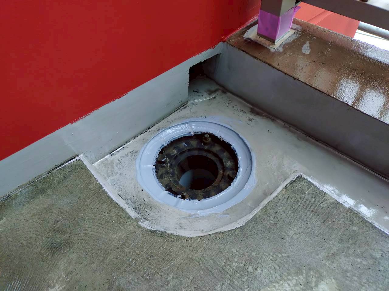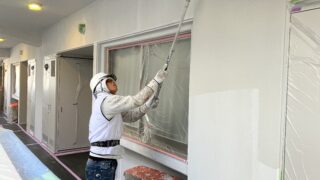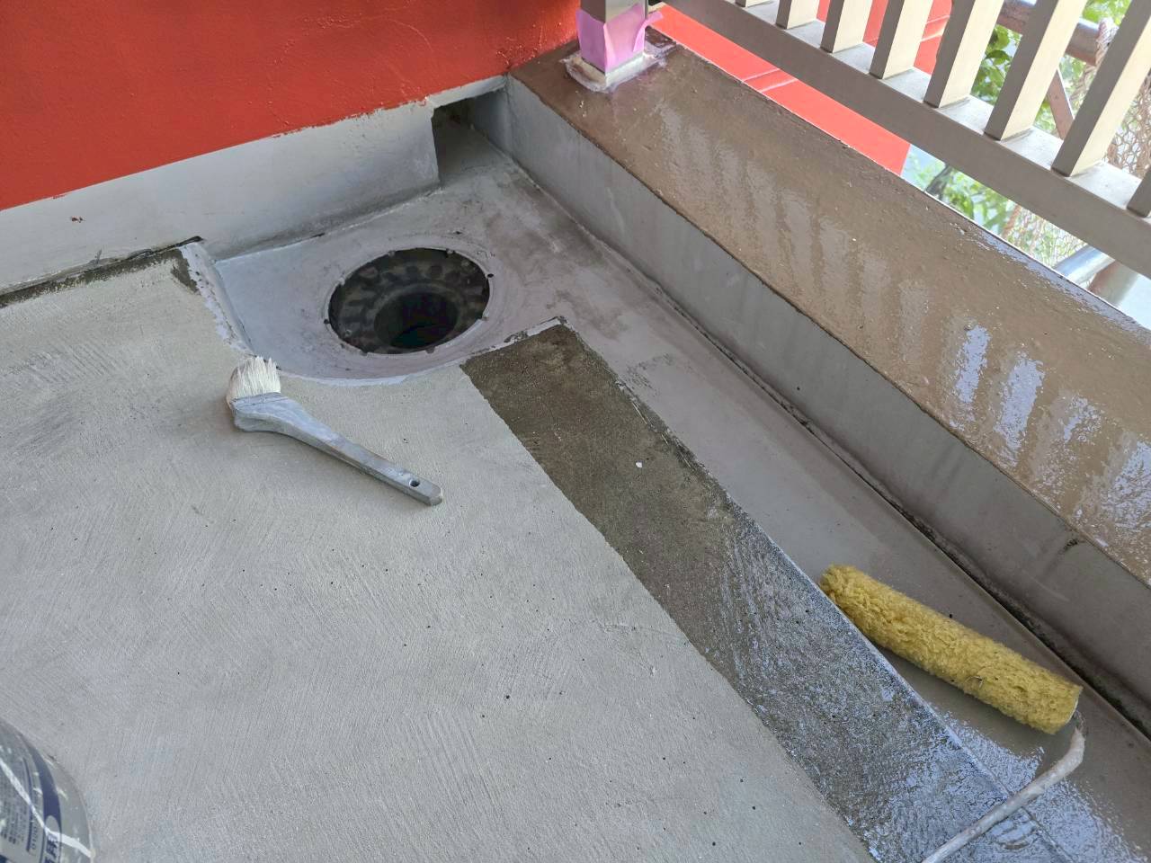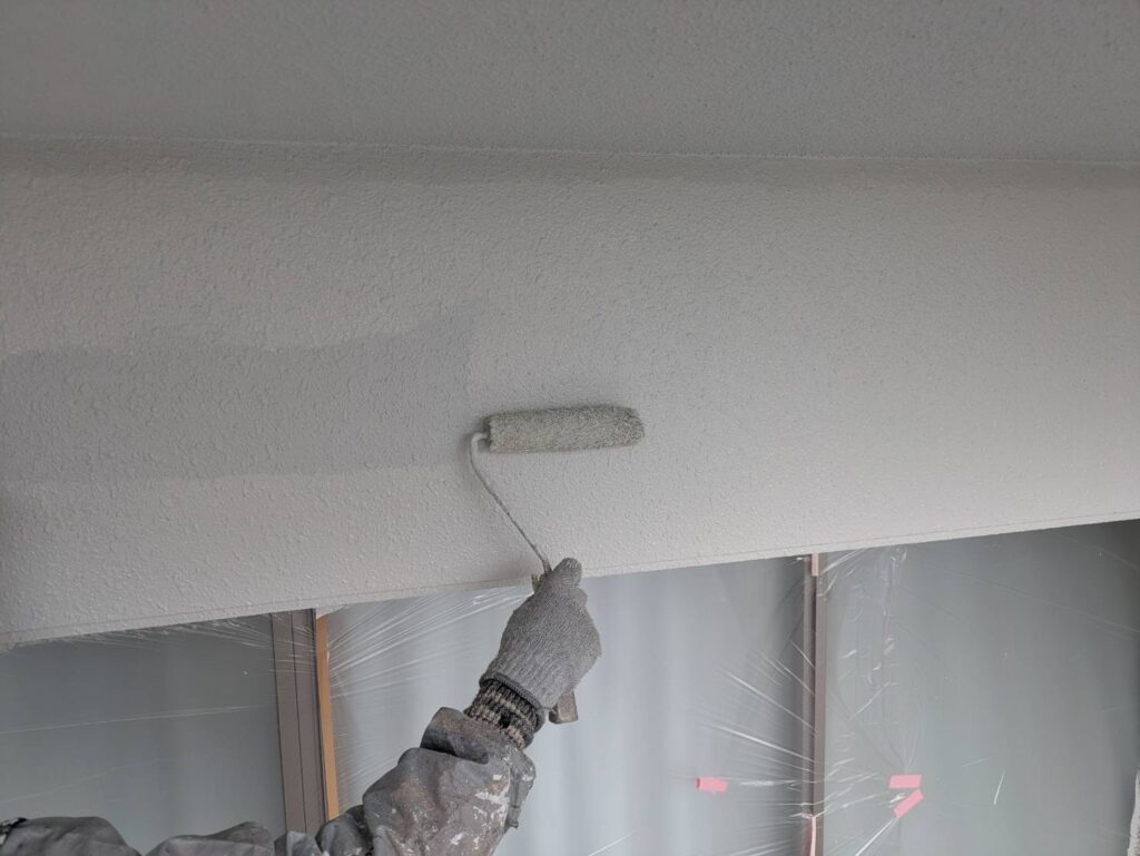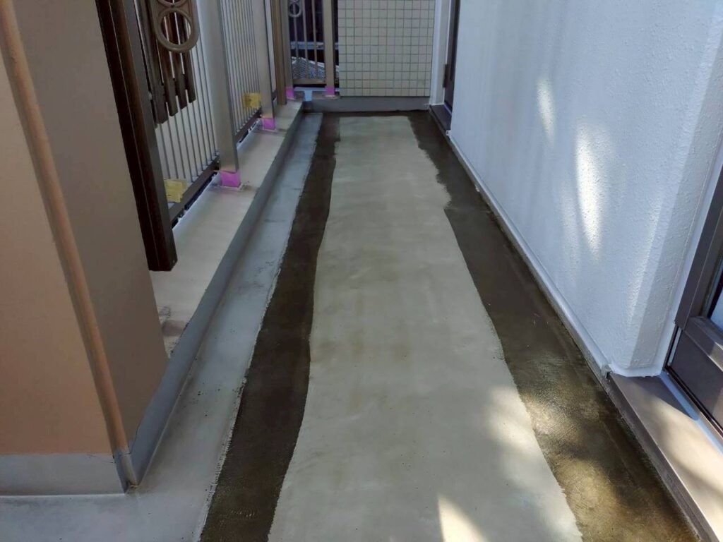 3月16日 (月) 作業状況 2026.03.23 目次 塗装工事防水工事3月17日 (火) 予定 塗装工事 B棟5号室バルコニー内の上塗り塗装工事をしました。 白系の壁、赤系の壁、茶系の壁の上塗りをしました。 下塗り(白色)→中塗り→上塗りの3回塗りの工程になります。 若干中塗りの色と違いますが、乾いて硬化すると中塗り塗装の色近づき艶が増します。 防水工事 5号室のバルコニーのプライマー塗布をおこないました。 ケレン(やすり等によりデコボコを平滑かし下地調整)→清掃→プライマーになります。 3月17日 (火) 予定 ・塗装工事 ・防水工事