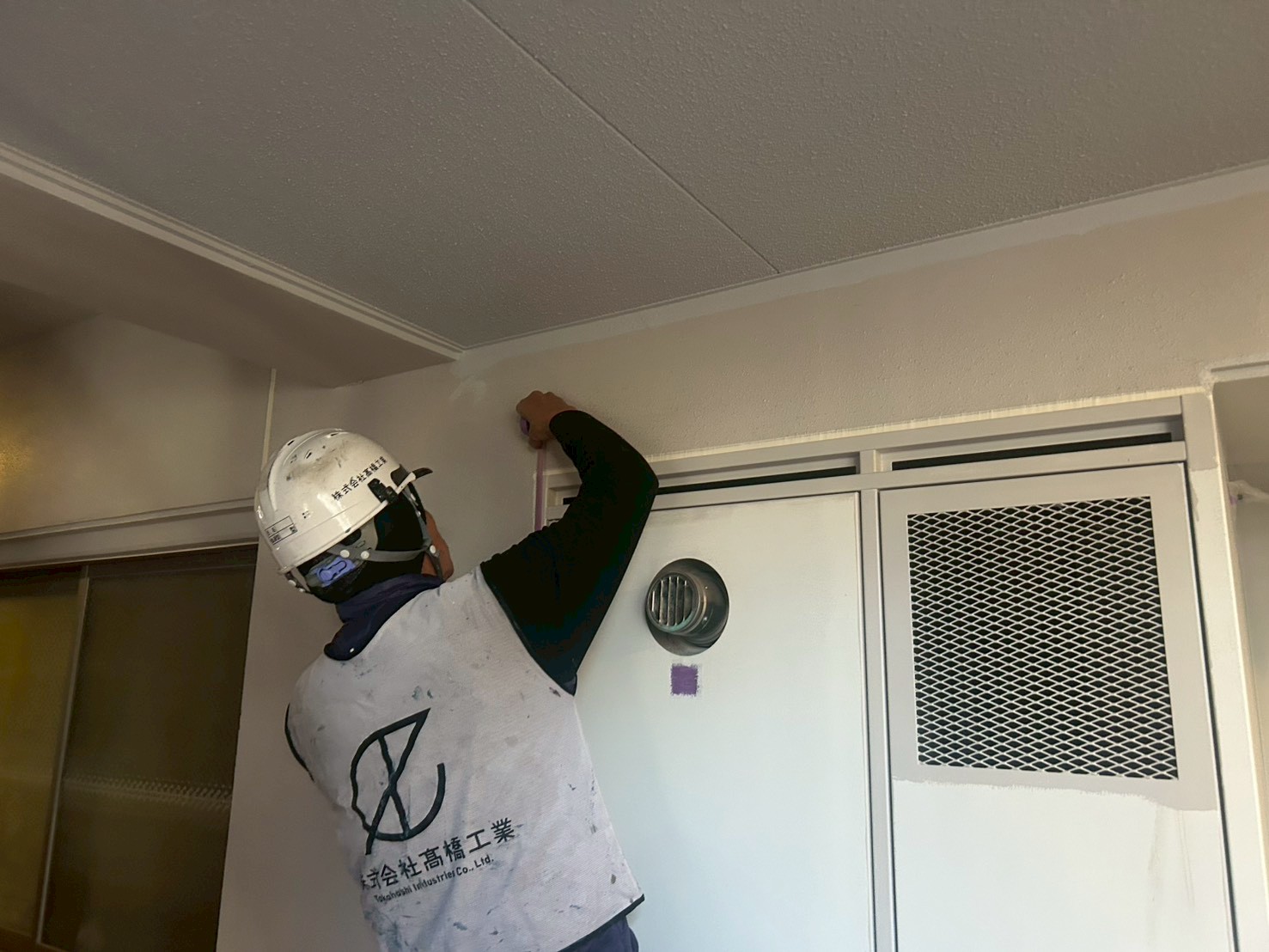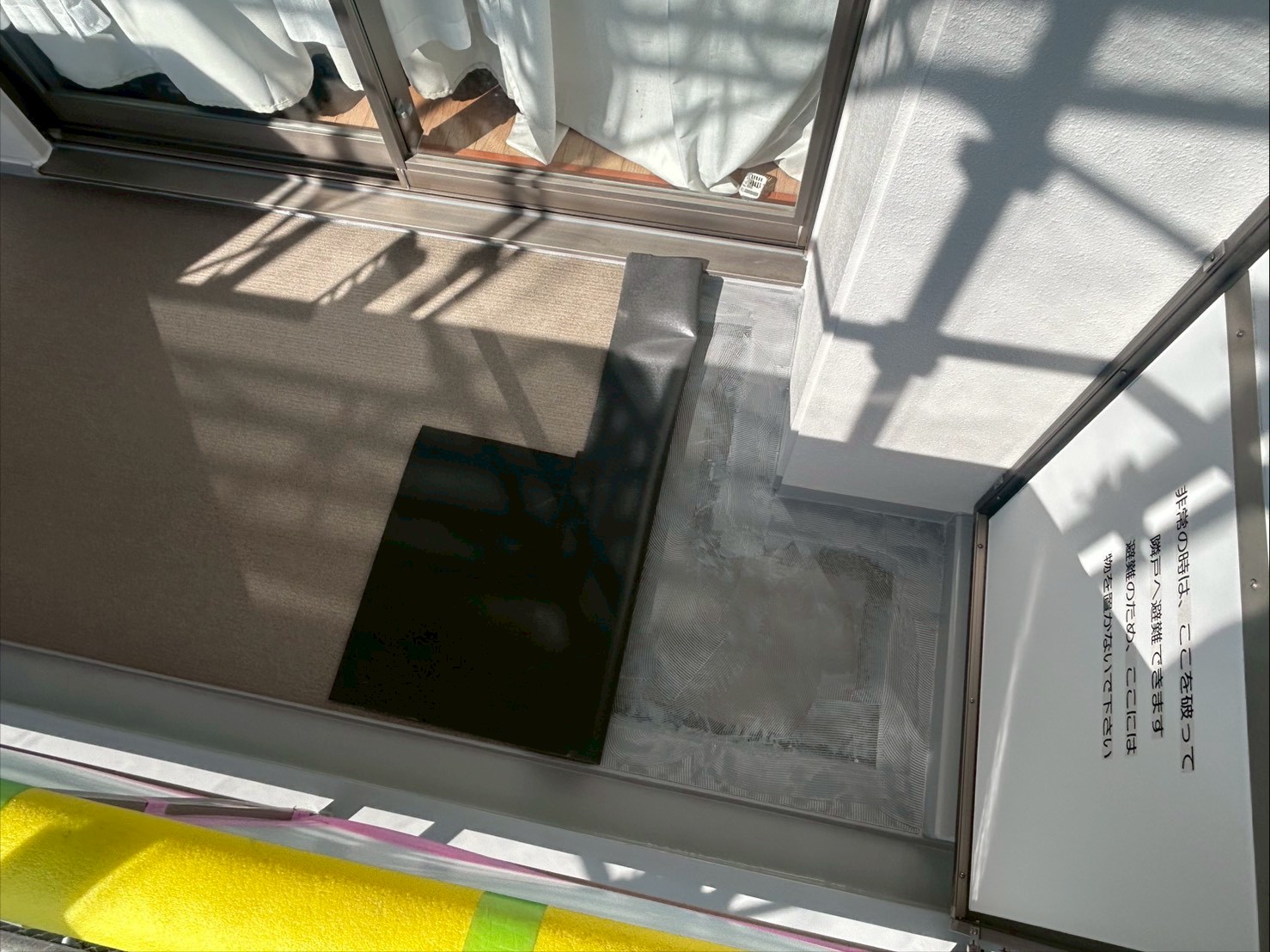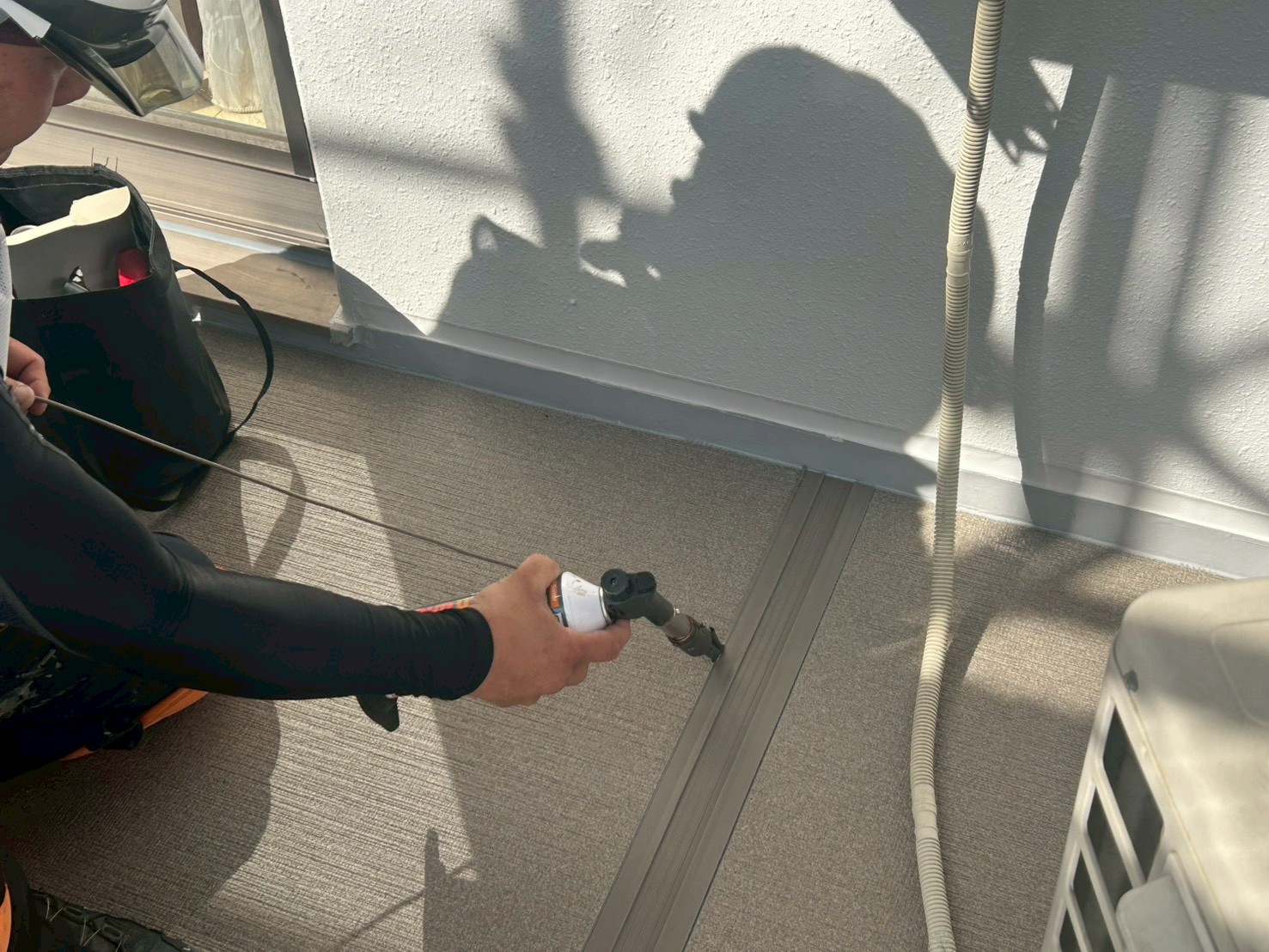 3月23日 (月) 作業状況 2026.03.30 目次 長尺工事塗装工事3月24日 (火) 予定 長尺工事 A棟バルコニーの長尺張り工事をしました。 新しい張りたての長尺は約1か月ほどは帳面張力が強く雨水が残る可能性があります。 また重みには強いですが、尖ったものには弱いので傷をつけないよう気を付けてください。 塗装工事 A棟共用廊下の養生作業、肌合わせ塗装をしました。 共用廊下、階段の塗装を本日23日(月)~1週間の予定で施工をしていきます。 3月24日 (火) 予定 ・塗装工事 ・防水工事