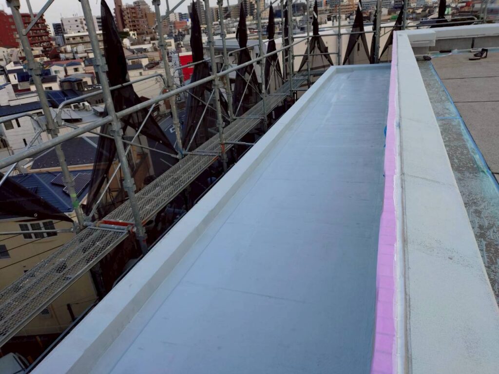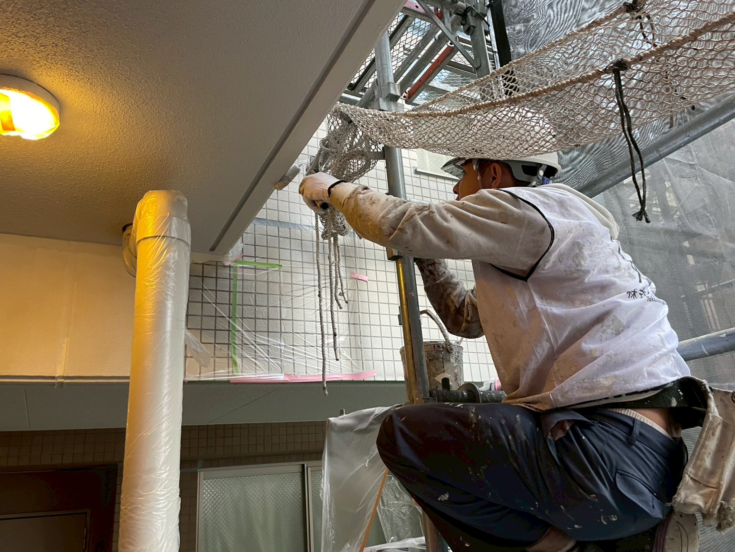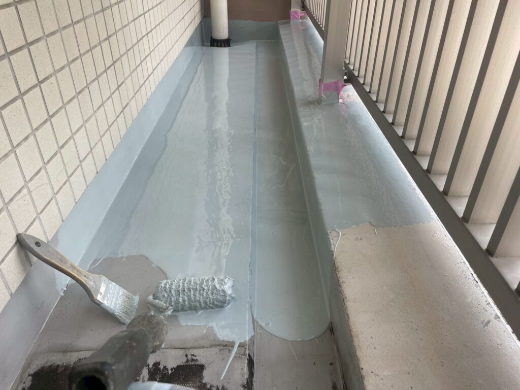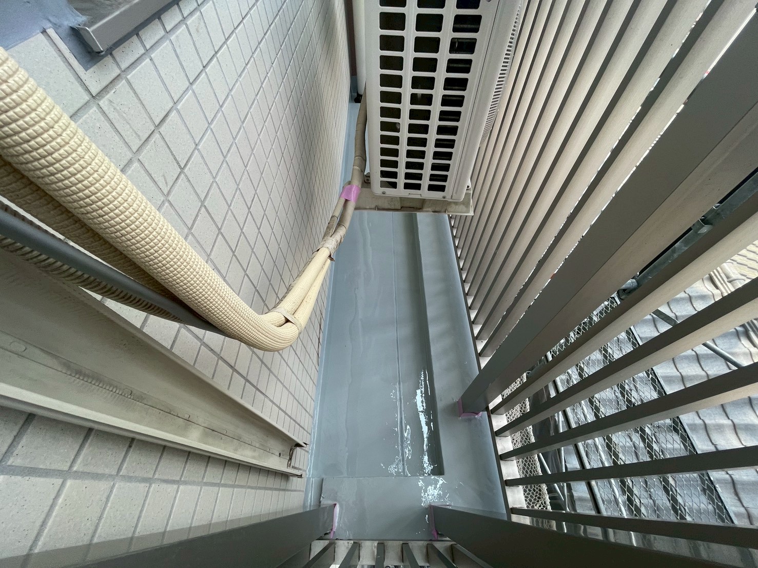 3月28日 (土) 作業状況 2026.03.31 目次 塗装工事防水工事3月30日 (月) 予定 塗装工事 土曜日作業のご協力ありがとうございました。 A棟共用廊下の塗装工事は内壁の上塗り塗装、鉄部の上塗り塗装をしました。 次回3月30日(月)にA棟玄関枠の塗装工事をします。 防水工事 A棟サービスバルコニー、庇のウレタン防水1層目塗布をしました。 次回ウレタン2層目塗布を予定しております。 3月30日 (月) 予定 ・塗装工事 ・防水工事 ・長尺工事