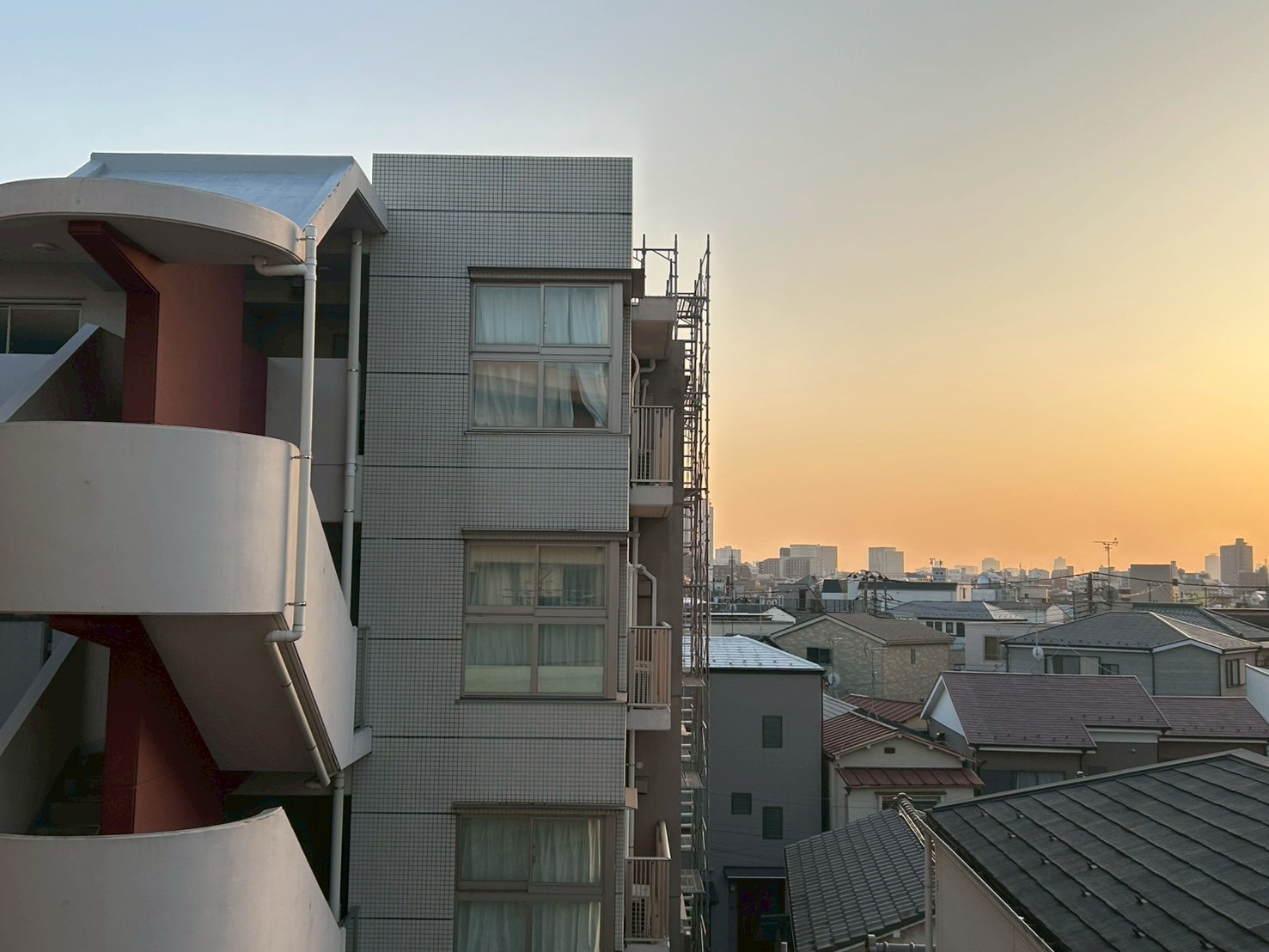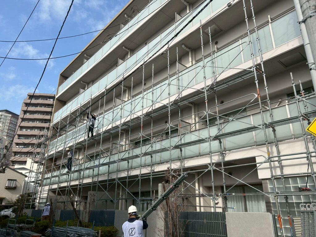 A棟1号室~4号室の足場組立工事が始まりました。足場の倒壊を防ぐため壁に穴を開けてアンカーで足場を固定する壁つなぎ作業にて振動音が発生いたします。また作業音を伴う作業ですがご理解の程よろしくお願いいたします。