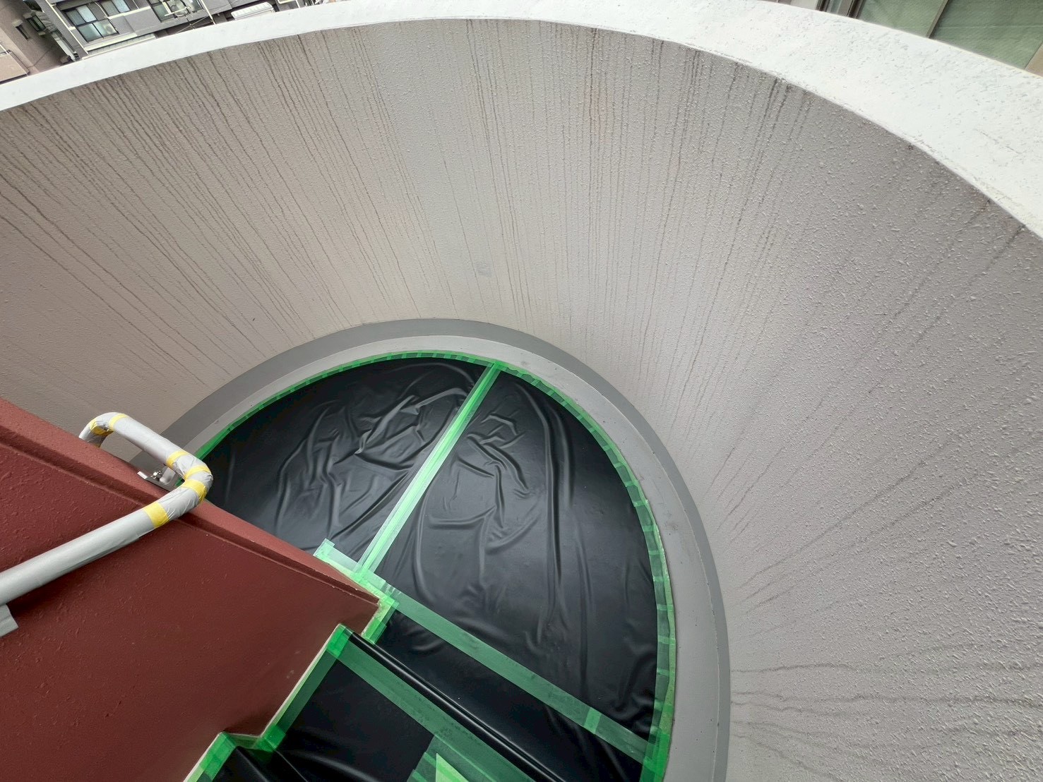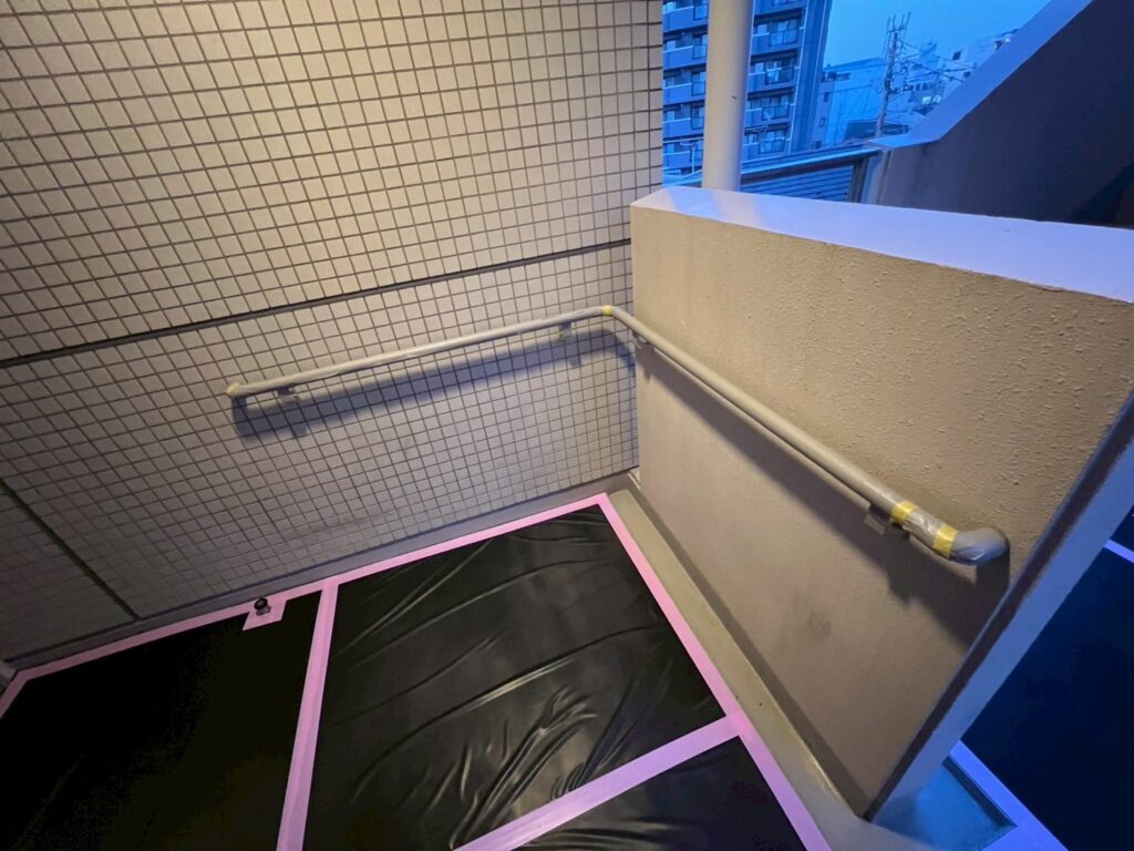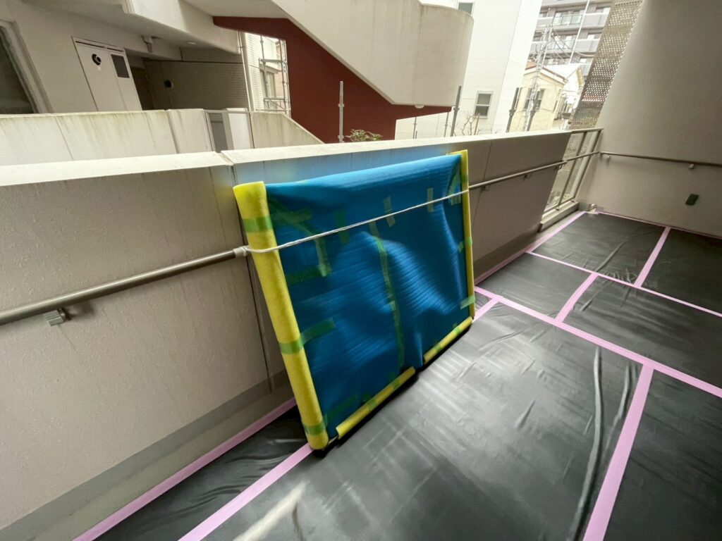 引き続きガラス養生、バルコニー内の養生を進めていきます。