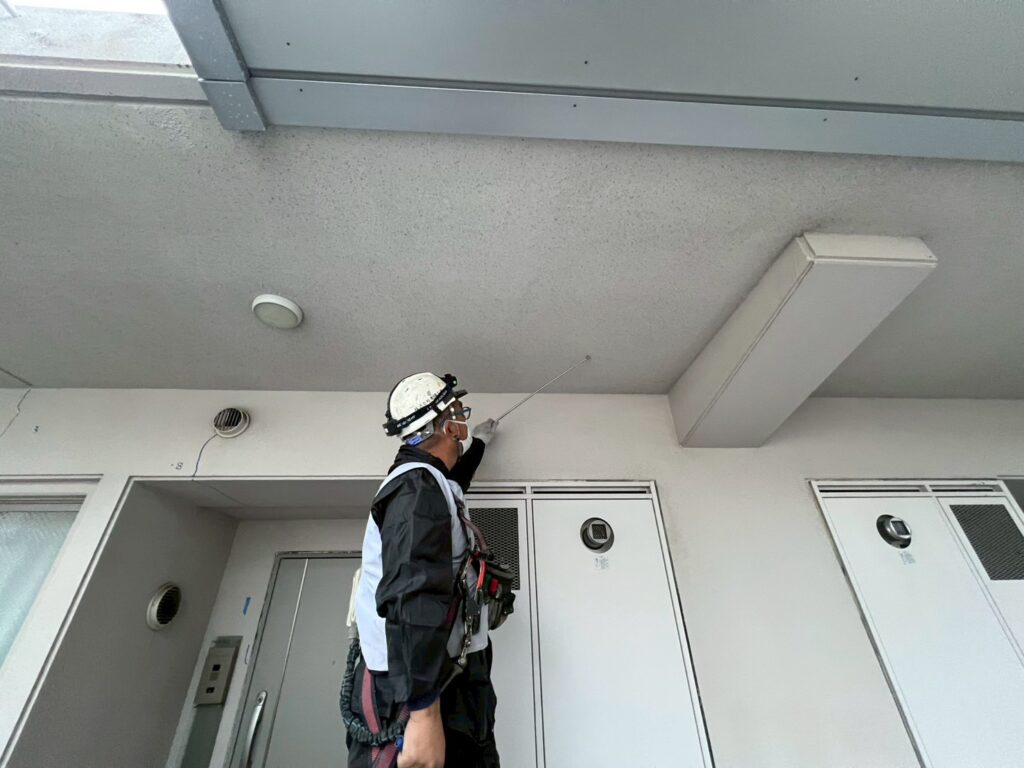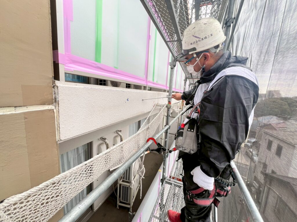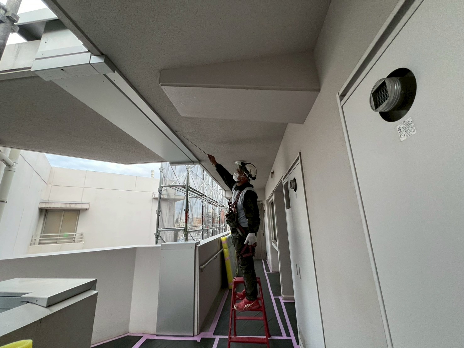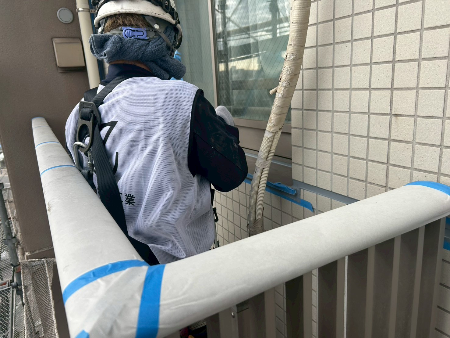 A棟外壁、バルコニー内のシーリング打ち替え工事。窓周りは触らなように開閉の際は注意して下さい。