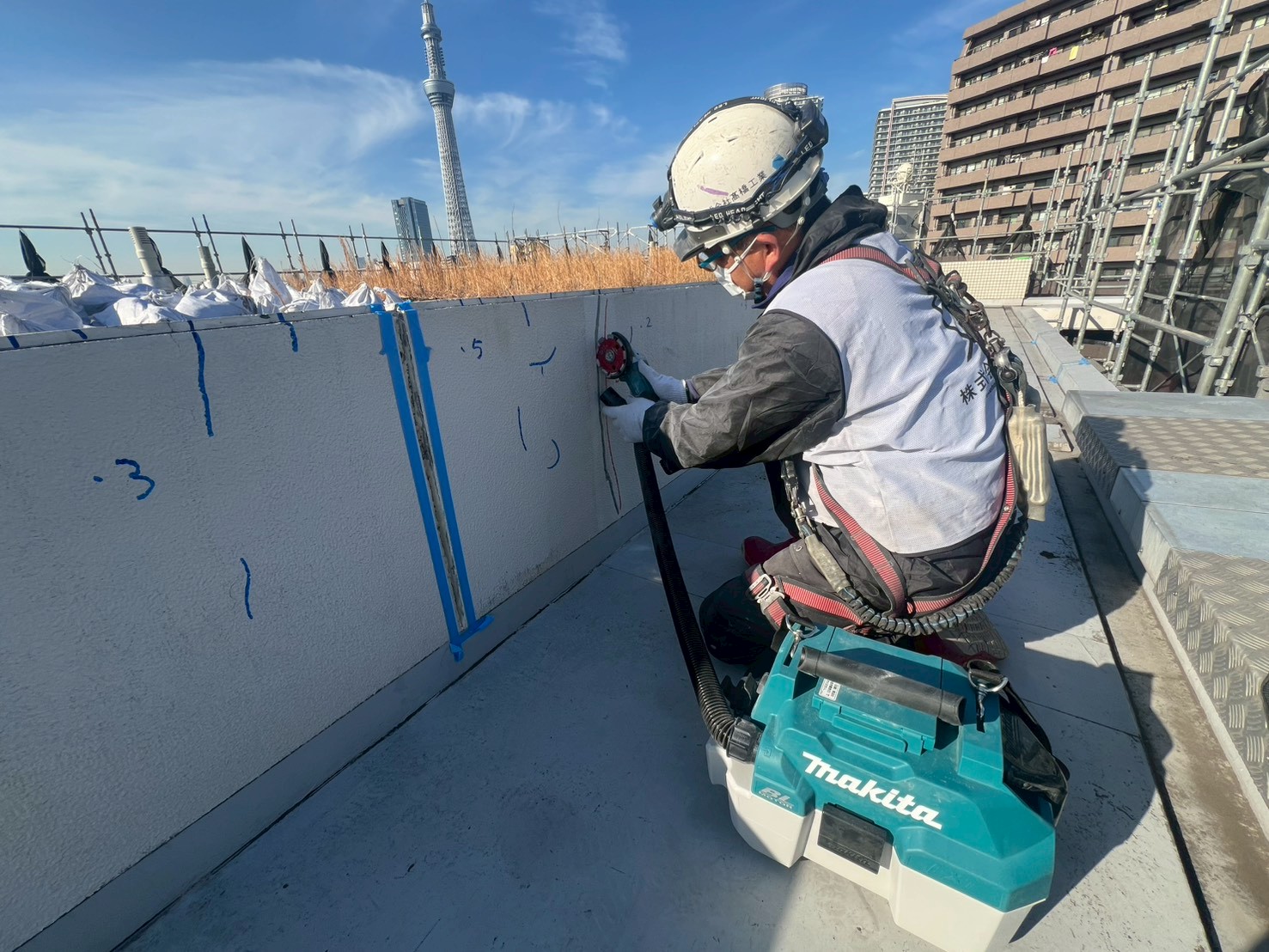 A棟屋上周り、タイル目地、窓周りのシーリング打ち込みをいたしました。