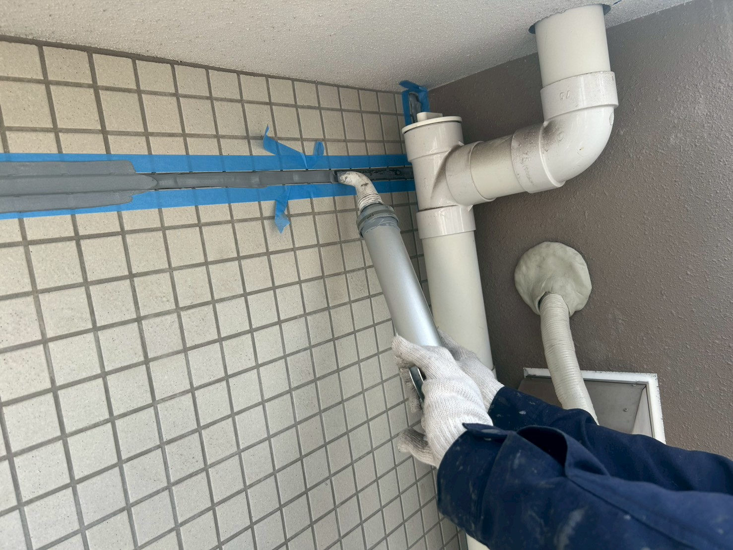 白色のシーリング材はウレタン材で施工後に防水材や塗装材を上から塗ります。