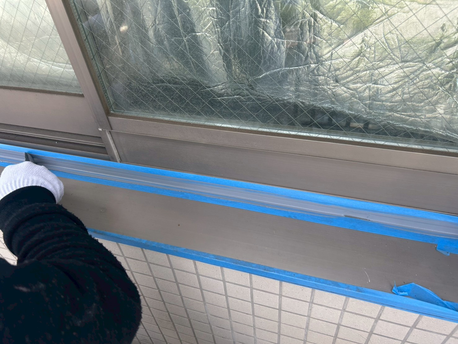 グレー色のシーリング材は変性シリコン材になり、硬化したら仕上がりになります。