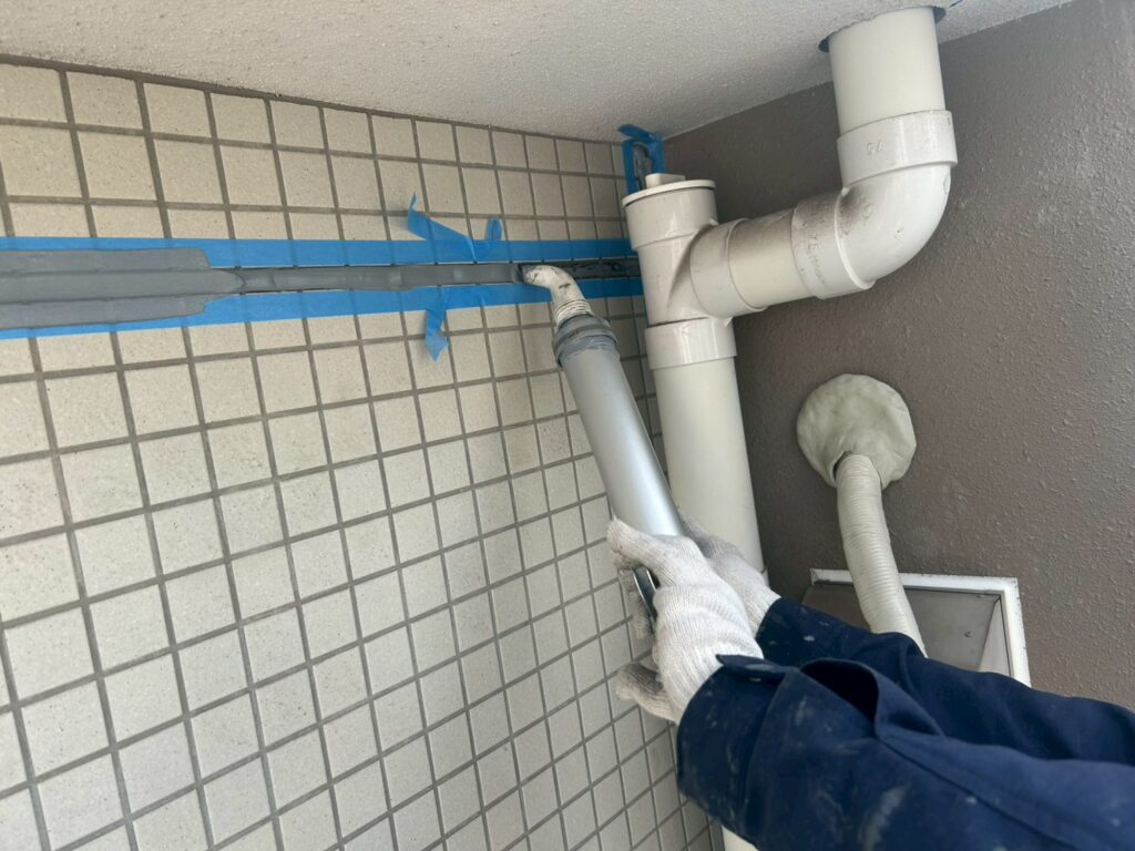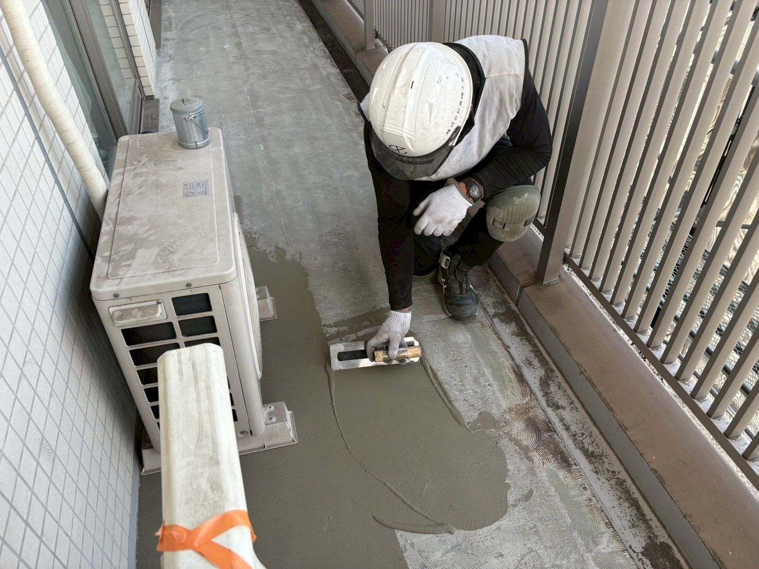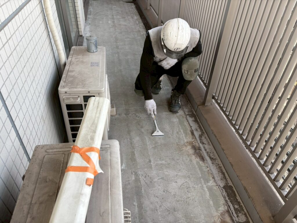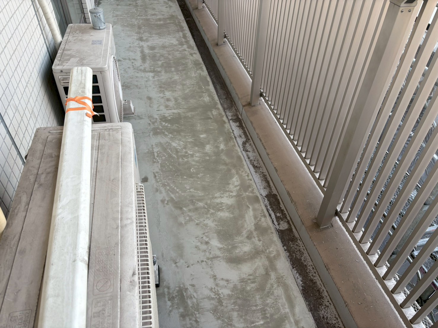 B棟バルコニーの長尺シート剥がしをおこない、ケレン、下地調整をしました。