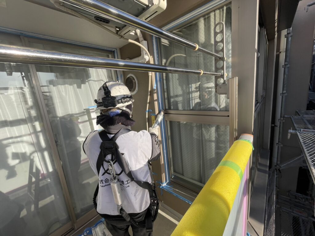 バルコニー内のシーリングの打ち替え工事を進めております。